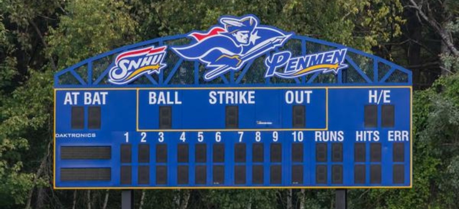 Located on North River Road across from Webster Hall, the Southern New Hampshire University baseball field has undergone extensive renovations in recent years, the biggest being the addition of a new facility behind home plate prior to the 2016 season. The building houses permanent bathrooms and storage on the ground level, a press box and media suite on the second floor and a filming deck with a spectacular view of the field on the top level. In front of all that, the temporary seating behind home plate was removed and replaced with permanent seating for approximately 200 fans, including a total of approximately 75 chair-back seats directly behind home plate. Fully ADA-compliant, the front row of the seating bowl sits above the top of the backstop wall, ensuring a great view of the action. A new state-of-the-art Daktronics scoreboard was also installed in right field, while updated signage and banners, as well as a standings/lineup board, were added to the facility.